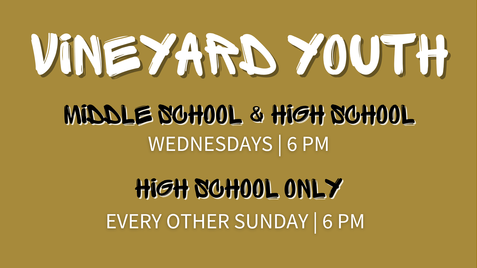 Join us every Wednesday from 6:00–7:15 PM for fun, connection, and growing in your faith together.
